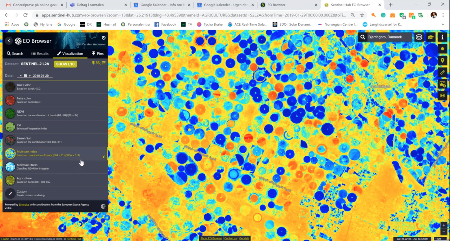 Og Sentinel 2 data kan også bruges til kontrol. Når man som landmand modtager EU-støtte skal man typisk overholde forskellige regler om typen af afgrøder på markerne. Her kan myndighederne via satellit-data kontrollere, om reglerne overholdes uden at skulle ud på kontrolbesøg hos hver enkelt landmand.