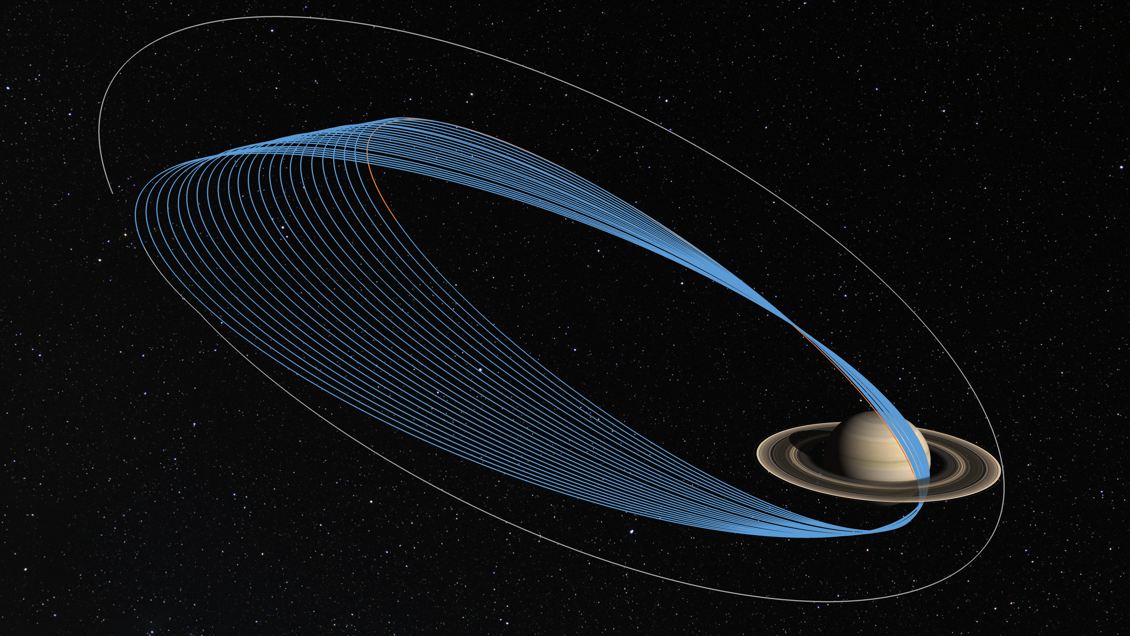 Ringene kredser om Saturn med forskellig fart