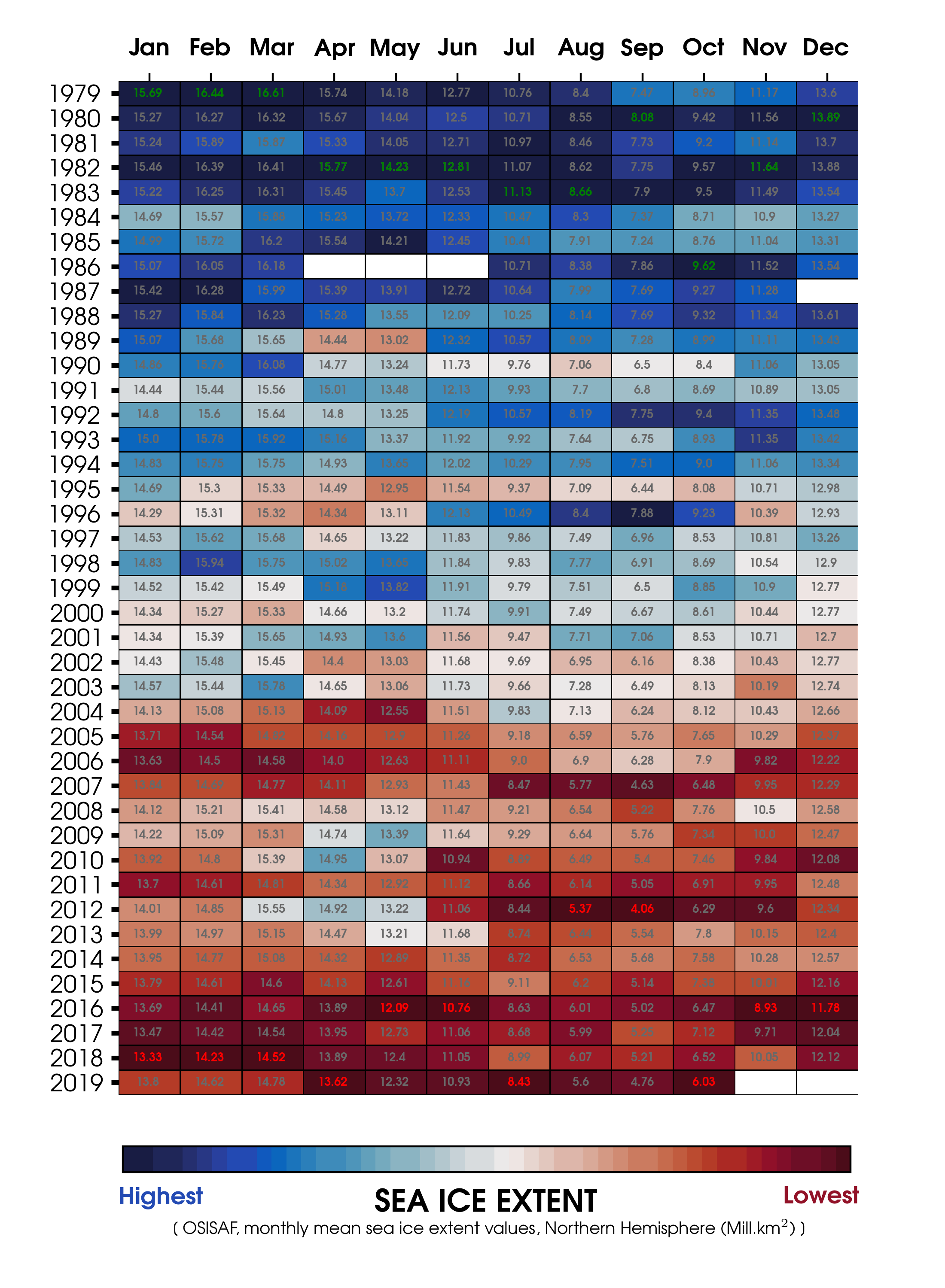 I Grønland og på Sydpolen er iskapperne blevet mindre. Data fra NASA’s GRACE satellitter har vist, at Grønlands indlandsis i gennemsnit mistede 260 milliarder ton is pr. år indtil 2012, og at Antarktis i gennemsnit mistede 127 milliarder ton is i perioden 1993-2016. GRACE står for Gravity Recovery and Climate Experiment. Hastigheden på smeltingen i Antarktis er mere end tredoblet siden år 2000. GRACE satellitten er blevet afløst af en ny satellit mission, som hedder GRACE-Follow On.