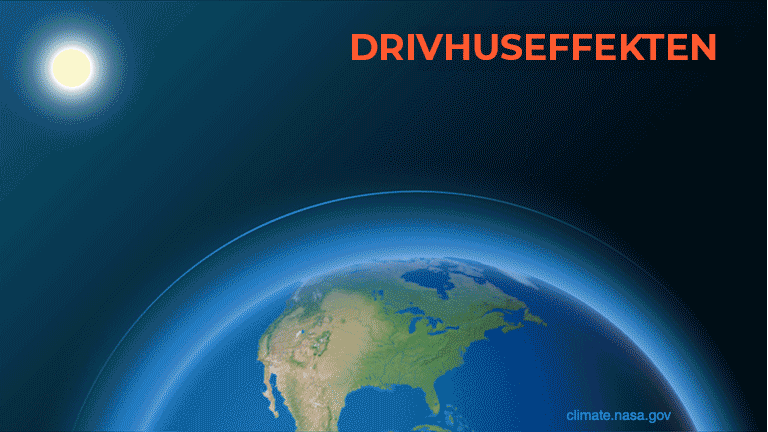 Vi kan takke drivhuseffekten for, at det er muligt at leve her på Jorden. Drivhuseffekten sørger for, at Jordens temperatur passer til mennesker, dyr og planter. Men drivhuseffekten er ved at blive for effektiv, og det får den globale temperatur til at stige. Drivhuseffekten opstår ved, at bestemte gasser holder på den varme, som Jorden udstråler. Disse gasser er vigtige drivhusgasser: Vanddamp (H2O), carbondioxid (CO2), metan (CH4) og nitrogenoxid (N2O). De driver op i atmosfæren og hindrer, at den energi, der er modtaget fra Solen, kan stråle tilbage til rummet som varme. Derfor opvarmes Jorden mere end normalt.