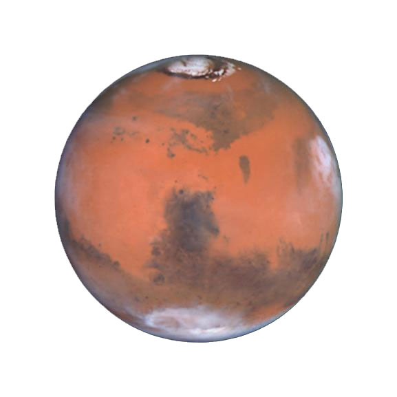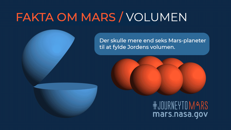 Mars’ volumen er cirka 1/6 af Jordens. (Illustration: NASA).