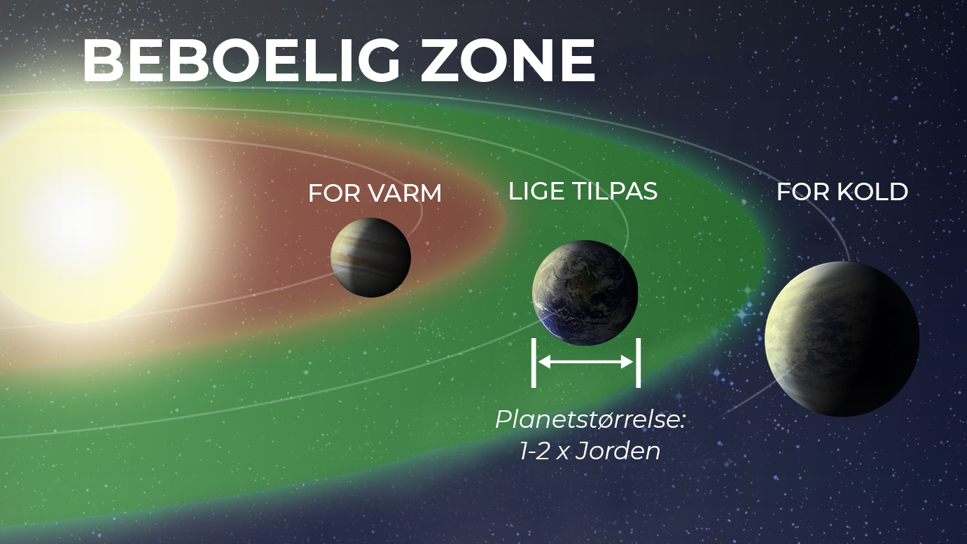 Alle de planeter, der kredser om andre stjerner end Solen, kalder vi for exoplaneter. Vi leder efter exoplaneter, fordi der måske er liv på nogle af dem. En del af exoplaneterne kredser nemlig om deres stjerne, i det man kalder den bebolige zone. Det er i den afstand til stjernen, hvor temperaturen gør det muligt, at der kan findes flydende vand på en planet med en fast overflade og en tilstrækkelig tæt atmosfære. Der er ikke fundet liv på en exoplanet endnu, men muligheden er der.